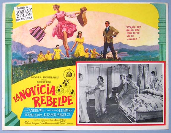 Beautiful Mexican jumbo lobby card (12.5x16.5") from the 1965 20th Century Fox musical film, THE SOUND OF MUSIC, which starred Julie Andrews, Christopher Plummer, Eleanor Parker, Richard Haydn, Peggy Wood and Charmian Carr. $25 each |