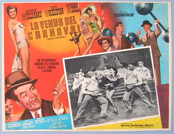 Beautiful Mexican jumbo lobby card (12.5x16.5") from the 1951 MGM musical / comedy film, TEXAS CARNIVAL, which starred Esther Williams, Red Skelton, Howard Keel and Ann Miller. $20 each |
