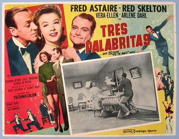 Beautiful Mexican jumbo lobby card (12.5x16.5") from the 1950 MGM musical film, THREE LITTLE WORDS, which starred Fred Astaire, Red Skelton, Vera-Ellen, Arlene Dahl, Keenan Wynn, Gale Robbins and Gloria DeHaven. $20 each |
