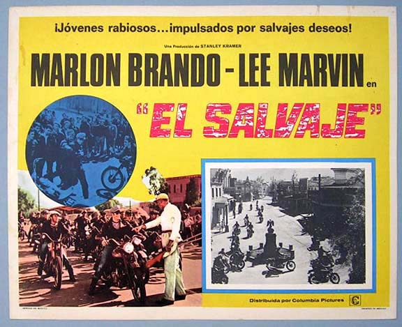 Beautiful Mexican lobby card (11x14") from the 1954 Columbia motorcycle / JD / biker film, THE WILD ONE, which starred Marlon Brando, Mary Murphy, Robert Keith, Lee Marvin and Jay C. Flippen. $25 each |