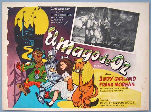 Beautiful Mexican jumbo lobby card (11.5x16") from the 1939 MGM musical / fantasy film, THE WIZARD OF OZ, which starred Judy Garland, Frank Morgan, Ray Bolger, Bert Lahr, Jack Haley, Billie Burke and Margaret Hamilton. $75 each |