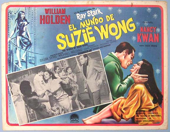 Beautiful Mexican jumbo lobby card (12.5x16.5") from the 1960 Paramount romance / drama film, THE WORLD OF SUZIE WONG, which starred William Holden, Nancy Kwan, Sylvia Syms and Michael Wilding. Edge / border wear, but nothing too major. $20 each |