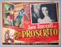 Beautiful Mexican jumbo lobby card (12.5x16.5") from the 1943 RKO western / romance film, THE OUTLAW, which starred Jack Beutel, Jane Russell, Thomas Mitchell, Walter Huston, Mimi Aguglia and Joe Sawyer. The cards have some water marks / discoloration along the right edge, but this flaw is not very distracting. Otherwise, the colors are bright and the card will display very well. $25 each |