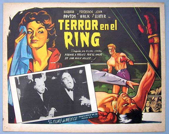 Beautiful Mexican jumbo lobby card (12.5x16.5") from the 1953 British noir / crime / boxing film, BAD BLONDE, which starred Barbara Payton, Frederick Valk, John Slater, Sid James and Tony Wright. $25 each