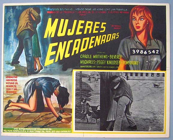 Beautiful Mexican lobby card (10.5x13") from the 1955 Allied Artists exploitation / bad girl / prison film, BETRAYED WOMEN, which starred Carole Mathews, Beverly Michaels, Peggy Knudsen, Tom Drake, Sara Haden and John Dierkes. $20 each