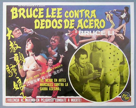 Beautiful Mexican jumbo lobby card (12x15") from the 1978 Hong Kong martial arts film, BRUCE LEE AND THE IRON FINGER, which starred Bruce Li and Kuang Yu Wang. This card is printed on very thin, semi-glossy paper. $10 each