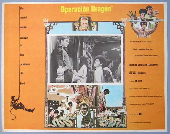 Beautiful Mexican jumbo lobby card (12.5x16.5") from the 1973 Warner Brothers martial arts / action film, ENTER THE DRAGON, which starred Bruce Lee, John Saxon, Kien Shih, Ahna Capri, Angela Mao and Jim Kelly. $20 each