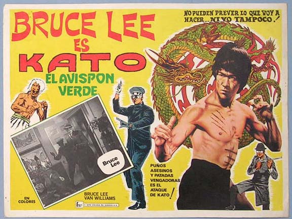 Beautiful Mexican jumbo lobby card (12.5x16.5") from the 1973 20th Century Fox masked hero film, THE GREEN HORNET, which starred Van Williams, Bruce Lee, Linda Gaye Scott, Robert Strauss and Wende Wagner. THE GREEN HORNET was compiled from several episodes of the 1960s television show, which were reedited and released theatrically in foreign countries. American produced posters and lobby cards from the film quite rare. $35 each
