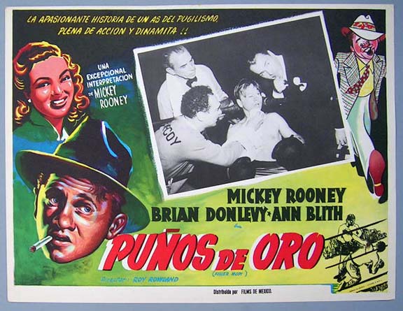 Beautiful Mexican jumbo lobby card (12.5x16.5") from the 1947 MGM boxing film, KILLER McCOY, which starred Mickey Rooney, Brian Donlevy, Ann Blyth, James Dunn and Tom Tully. $25 each