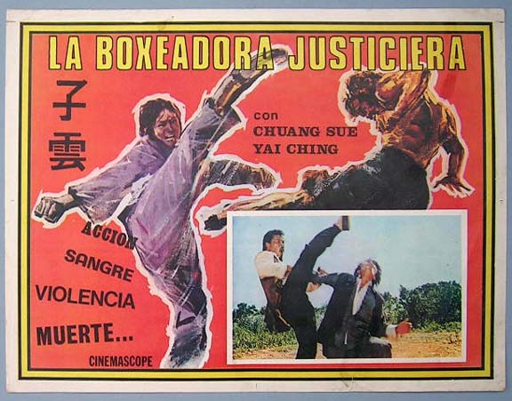 Beautiful Mexican jumbo lobby card (12.5x16.5") from an unidentified martial arts film -- probably produced in the 1970s. The Spanish title of the film is, La Boxeadora Justiciera. If anyone can help us identify this film, we'd appreciate hearing from you. $15 each