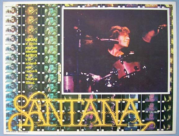 Beautiful Mexican jumbo lobby card (12.5x16.5") from the 1974 musical documentary / concert film, SANTANA, which starred Carlos Santana and the other members of his band. The film was directed by Andres Agusti and Alfredo Anzola. $15 each