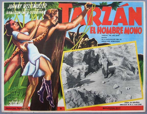 Beautiful Mexican jumbo lobby card (12.5x16.5") from the 1932 MGM action / jungle adventure film, TARZAN THE APE MAN, which starred Johnny Weissmuller, Neil Hamilton, Maureen O'Sullivan and C. Aubrey Smith. $35 each