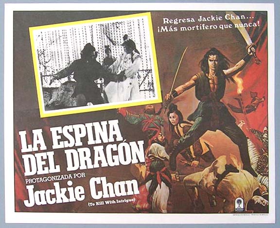 Beautiful Mexican lobby card (11x13.5") from the 1977 Hong Kong martial arts film, TO KILL WITH INTRIGUE, which starred Jackie Chan, Hui Lou Chen, Ching Hsia Chiang and Feng Hsu. $15 each
