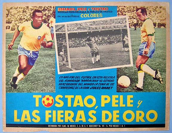 Beautiful Mexican jumbo lobby card (12.5x16.5") from the 1969 Brazilian soccer / futbol documentary film, TOSTAO AND THE KINGS OF FUTBOL, which starred Tostao, Pele, Gerson and Jairzinho. $25 each