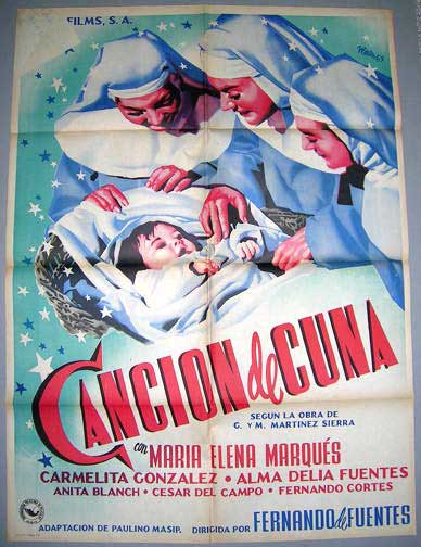 Pretty and stylish poster pictures three nun's taking care of a baby. This is a used onesheet which has some pinholes, extra folds, plus light wear on the edges. However, these flaws do not greatly affect the main image area, which is clean and bright... This movie starred Maria Elena Marques, Alma Delia Fuentes, Carmelita Gonzalez and Anita Blanch. $30