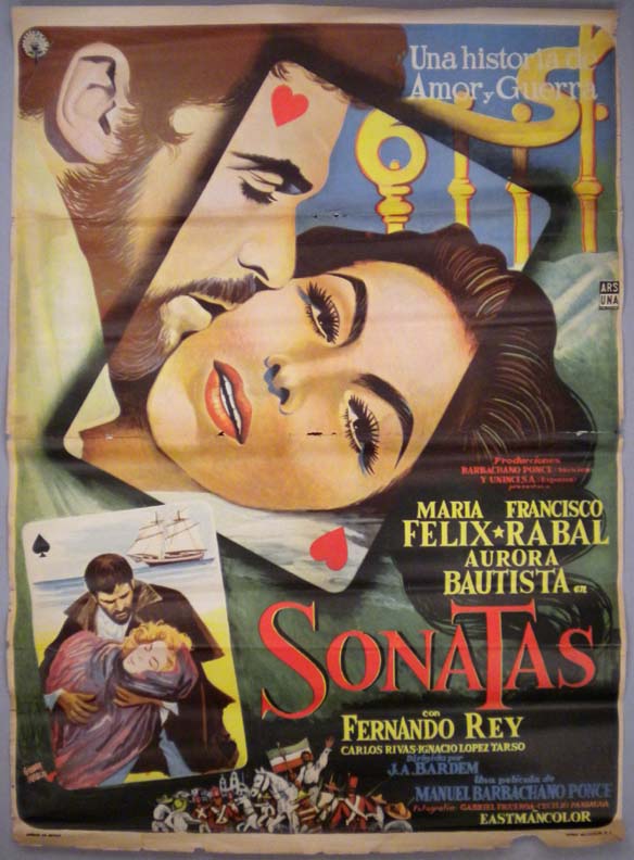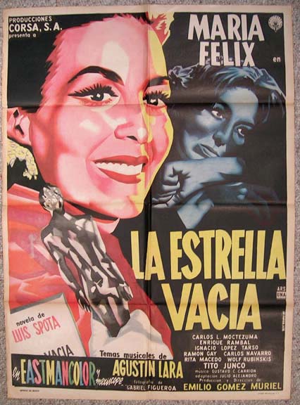 Stylish and colorful film poster has two nice images of the popular actress, Maria Felix. There is some definite wear at some of the folds, but it could be restored. Nothing too terrible!... This movie starred Ignacio Lopez Tarso, Carlos Bracho, Eric del Castillo and Evangelina Elizondo. $20