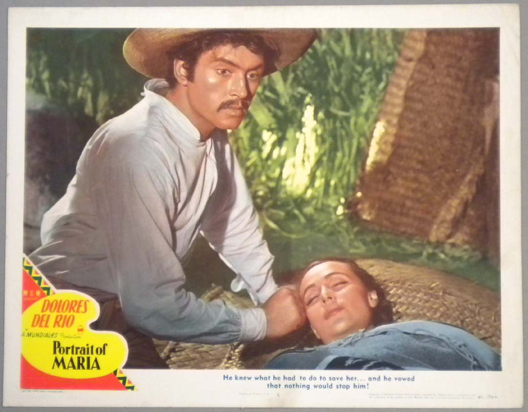 Rare lobby card from the 1944 Mexican fdrama / romance ilm, PORTRAIT OF MARIA, which was released in Mexico as, Maria Candelaria. The card features a wonderful image of Pedro Armendariz kneeling beside a sleeping Dolores del Rio... This movie also starred Pedro Armendariz, Alberto Galan, Margarita Cortes and Miguel Inclan. $20