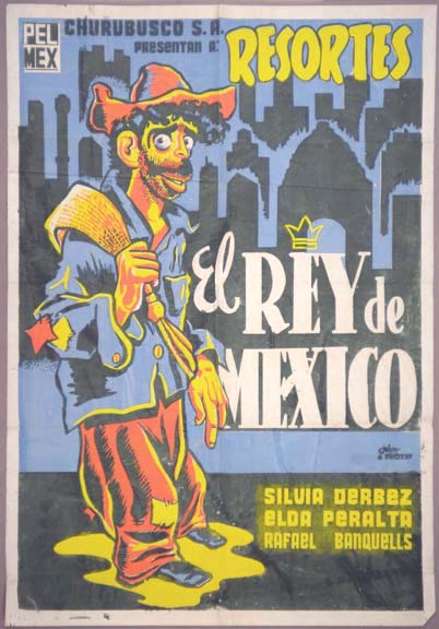 Unusual Mexican comedy film poster features a nice caricature of a downtrodden Resortes. Produced with a simple, silk-screen process, the poster has an interesting look, with lots of primary-colors!... This movie starred Adalberto 'Resortes' Martinez, Silvia Derbez, Elda Peralta and Jose Galvez. $20