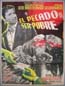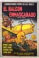 Colorful Mexican horror / sci-fi movie poster with lurid color and a nice portrait of the hideous monster. This was the first half of the two-film horror series, which concluded with, Huella Macabra. There is some edge wear, plus an area of discoloration caused by a piece of tape on the back, but these flaws are not too distracting. The poster will still display quite well... The film starred Eric del Castillo, Jaime Fernandez, Elsa Cardenas, Carman Molina and Ramon Bugarini. $30
