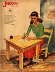Stories on actor Eddie Polo, Ingrid Bergman and the new art of Cuba. Full page Maria Montez ad. Measures approximately 10x12.5 inches. Mild edge wear, minor spotting, pen-written date below magazine title. No major problems.