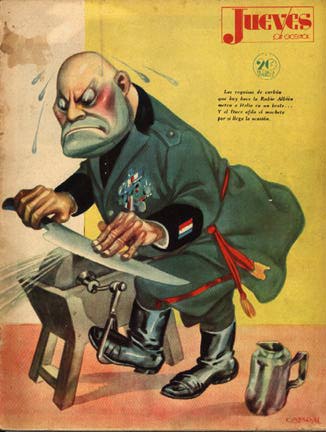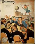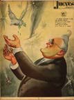 Stories on Rafael Lopez, the Cathedral of Mexico and WW2. Nice inside caricature of Mussolini. Measures approximately 10x12.5 inches. Mild edge wear, pen-written date below magazine title. No major problems.