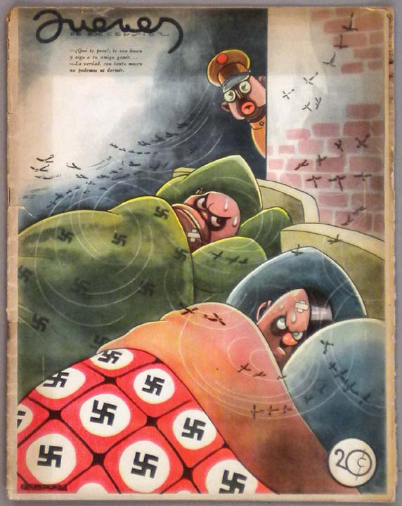 Stories on WW2, bullfighting and submarines. There is also a full-page Cantinflas comic strip. Measures approximately 10x12.5 inches. Mild edge wear along spine, pen-written date near top edge. The magazine pages are also slightly wavy. No major problems.