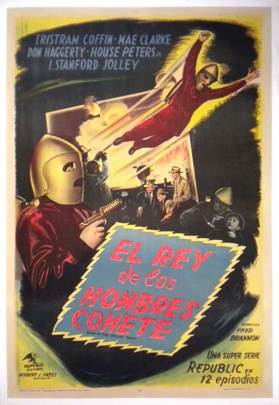 Wonderful Argentine onesheet poster (29x43") from the classic U.S. sci-fi serial, KING OF THE ROCKET MEN. This was the serial that introduced Republic studio's Rocketman character. There are superb sci-fi graphics, including; spacemen, ray guns, and several great shots of rocketman, himself!... The film starred Tristram Coffin, Mae Clarke and Don Haggerty. (This poster is mounted on linen, so it must be sent rolled.) SOLD |