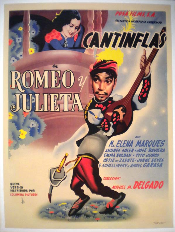 Exceptional Mexican comedy movie poster features unusual art work which combines caricatures with photo-graphics. The main image shows beloved comedian Cantinflas serenading his lover on a mandolin... The film starred Mario Moreno 'Cantinflas,' Maria Elena Marques, Angel Garasa, Andres Soler, Tito Junco and Jorge Reyes. (This poster is mounted on linen, so it must be sent rolled.) $495 |
