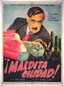 Memorable Mexican film noir / gangster movie poster features a close-up image of a scarred Ms. Molina, surrounded by other images from the film. Striking art work by Espert!... The film starred Antonio Badu, Carmen Molina, Luis Beristain and Leticia Palma. (This poster is mounted on linen, so it must be sent rolled.) $495 |