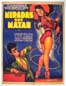 Wonderful Mexican film noir movie poster features two great images of Ninon Sevilla -- one as a sexy showgirl and the other as a frightened woman in bondage. Superb graphics and design in a Renau like style!... The film also starred Roberto Canedo, Luis Aldas, Jose Baviera and Aurora Walker. (This poster is mounted on linen, so it must be sent rolled.) $425 |