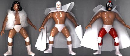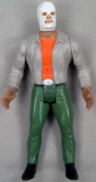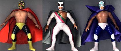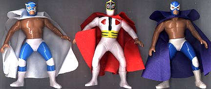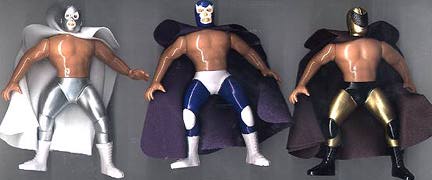 Great 5.5" posable action figures are well-made -- each accurately portraying a real-life Mexican wrestling star. This series were never produced with display cards, so all figures are sold loose. These toys were made in Mexico, but they are of far better quality, than the typical Mexican action figure. Interestingly enough, some were made with the Luchador in his wrestling outfit, while there are some variations with the wrestler wearing his mask, but otherwise dressed in street clothes. There are approximately 100 figures in this series (including a few midget wrestlers). |